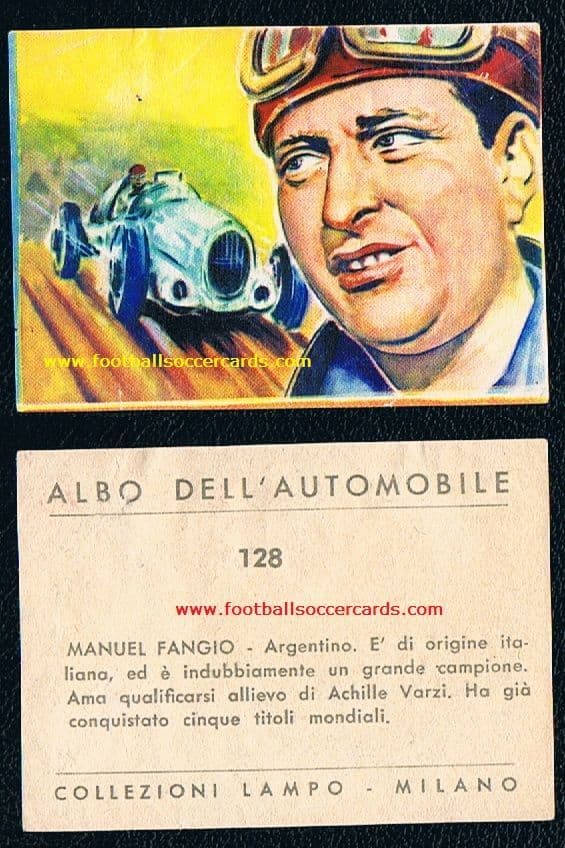 1958 Fangio LAMPO no glue no amr clean but well handled card from Italy F1 super rarity without glue
