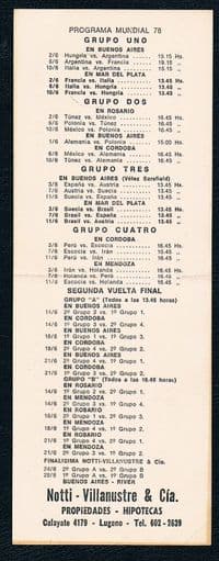 a chance to own a piece of WC78 history, this '78 Notti Villanutsra World Cup Argentina fold-out with World Cup dates & places flyer is both original and economical - it costs very little to add to...